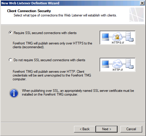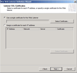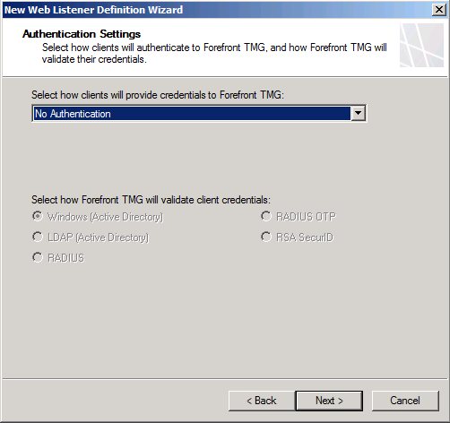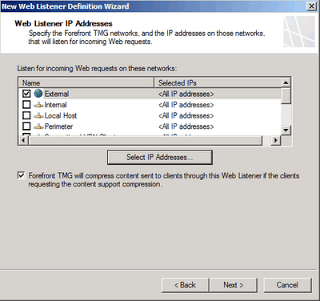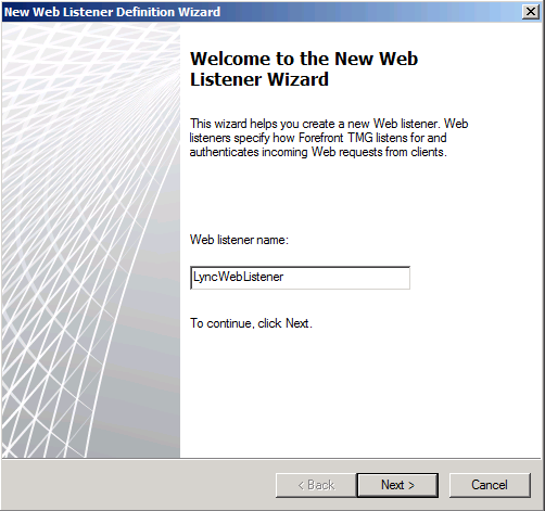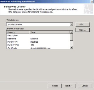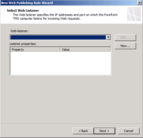 Since this is a brand new TMG no Web Listener exists so we select New and continue. The Web Listener Name is irrelevant but always good to use something descriptive