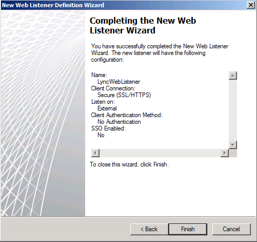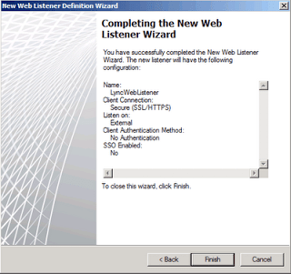 Finishing the Web Listener and continuing on with the Web Publishing rule