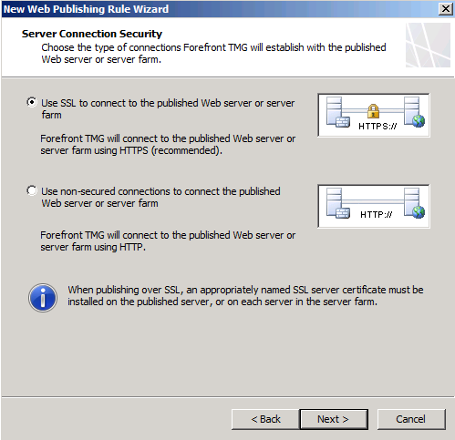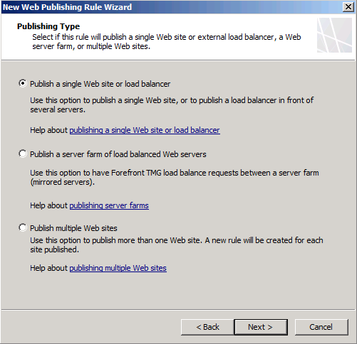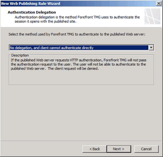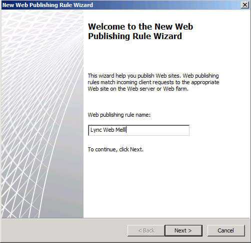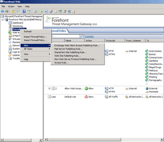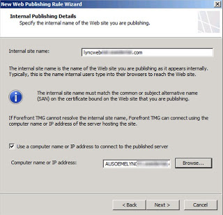 Once TMG has been installed with 2 interfaces – one pointing to LAN and the other to the Internet you are ready to create the Web Publishing Rule for Lync.