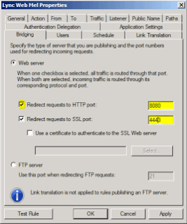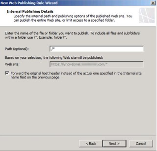 This rule will be used to access GAL, ABS, Web Conferencing (Meet and Dial) as well as Lync Mobile. Of course all of these URLS need to be included in the Public Certificate and Public A record for each name needs to be configured.