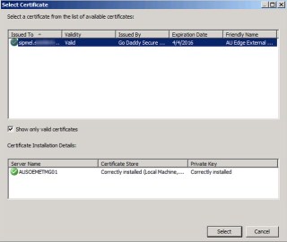 Important to note that the certificate actually needs to be in the local store Personal or it wont show up when you click on select Certificate