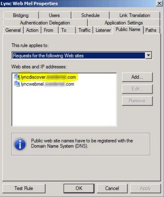 Since the existing Web Listener rule already defines the port forwarding and includes the Cert the logical approach is to simply add the new URL lyncdiscover. to this rule and update the certificate accordingly.