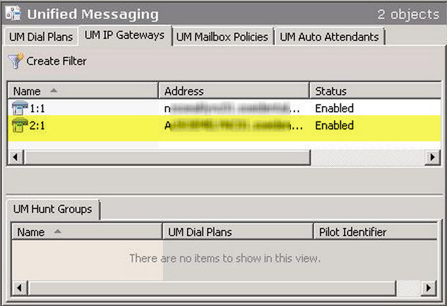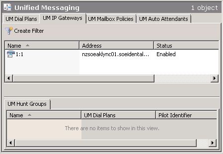 And a final check on the Exch\UM Exchange Management Tools showed that the new Gateway was nos sorted as below:-