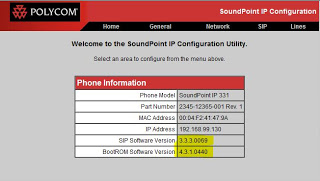 When thePolycom IP331 arrives it usually has an older version of software on the device. Mine came with SIP Software version 3.3.3.x and Boot ROM Version 4.3.1.x