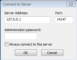 Once installed you will see the Connect to Server window, just click OK