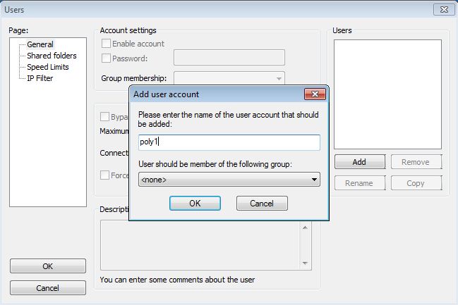 Next we need to define the user and home directory. Click on Add user and define the user name