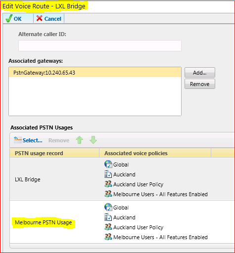 From the Auckland Route add the PSTN Usage for the Melbourne users as below.