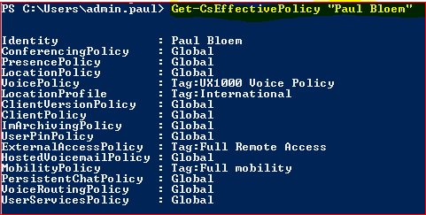 Get-CsEffectivePolicy – Identity “Paul Bloem”