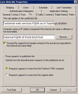 - Use browse to find the internal Front End Pool, tests the DNS resolution that way
