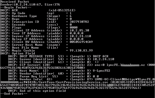 Notice DHCP SIP Server (Option 120) and Vendor Info (Option 43)