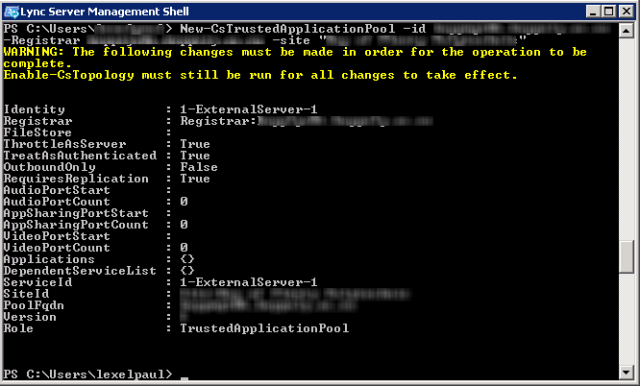 New-CsTrustedApplicationPool -id mySEFAUtilServer.domain.com -Registrar mylyncpool.domain.com -site Site:MySite