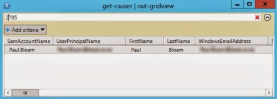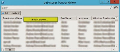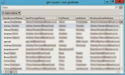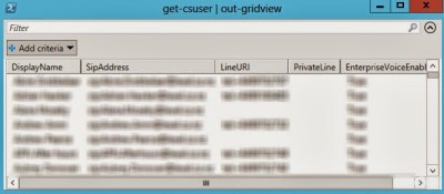 It’s often frustrating to trawl through a lengthy display of text when calling up Lync data such as an output from get-csuser. To be fair I often just dump the results to a csv file with some formatting. That does however mean that I now need to open the xml file to view the results.