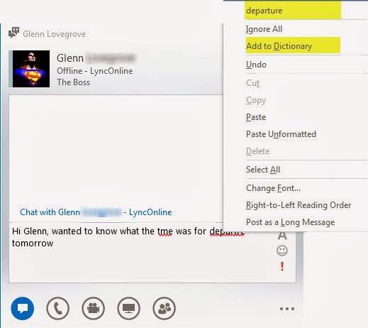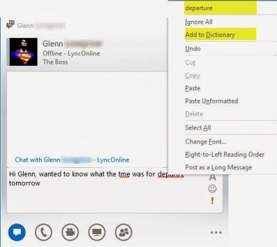 More noteworthy is the introduction of Spell Checking, its enabled on installing the update and can be toggled in Lync – Options