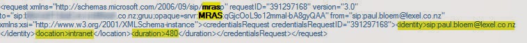 The Second MRAS message (SERVICE) shows the service request from the Lync Client to the Front End for credentials to chat to the Lync Edge.