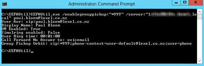SEFAUtil.exe /enablegrouppickup:”*999″ /server:”” sipuri@domain.com