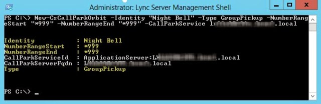 New-CsCallParkOrbit -Identity “Night Bell” -Type GroupPickup -NumberRangeStart “*999” -NumberRangeEnd “*999” -CallParkService “”