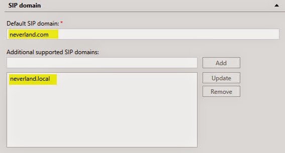 Moving forward we want users to be assigned to the neverland.com sip domain by default. So Back to the Topology builder to change the default SIP Domain