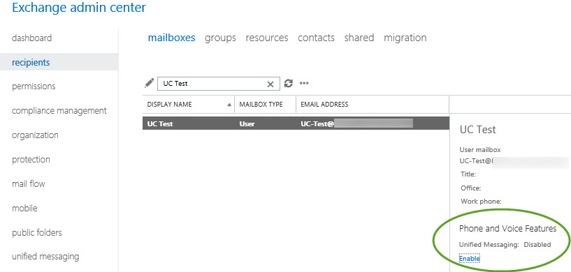 - From O365 – Enable the user for UM
