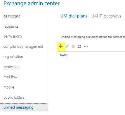 2. Add a new UM Dial Plan by clicking on the +