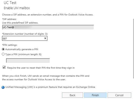 The following step only applies if UM is already deployed on premise and this UM deployment is part of migrating UM to O365. This is done from the on premise exchange environment.
